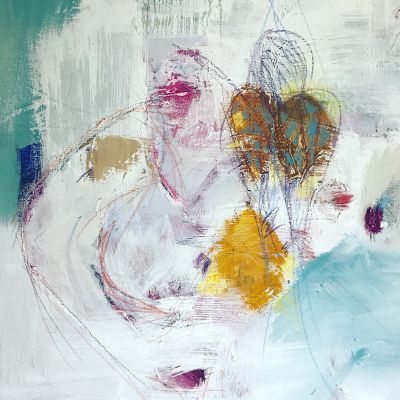 In this collection the pieces are like snapshots or mementoes of the journey a fully completed piece has made. Some of the originals are still in process, some are just about to be available for sale and some are already completed and sold. Each piece you see in this collection is a small section of marks within the larger piece, some which remain until the end and sometimes they are lost beneath the layers that follow with just a suggestion of what was present before.