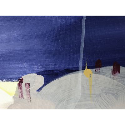 This piece is beloved for it's simplicity. Beautiful jewel like blues and sandy neutrals creates a soothing and expansive feeling. Reminicent of a magical night under velvety skies somewhere sandy. The other pieces in this series that have come from the same work are both of the Definitivatly proven prints. Although fairly contemporary in it's feel, Comfort looks really quite lovely in many diferent interiors.